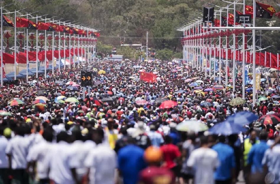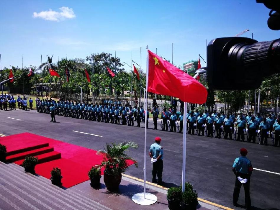 △巴新的欢迎仪式在议会大厦前广场举行。(央视记者张晓鹏拍摄)