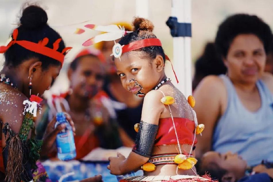 △巴新独立大道开通现场,欢迎人群中的一位女孩。(央视记者彭汉明拍摄)