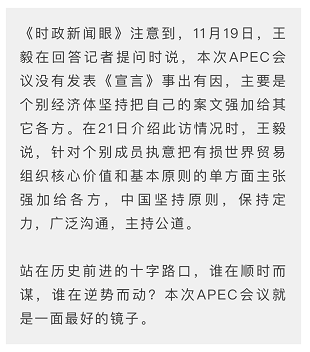 △各国媒体记者在APEC会议新闻中心关注习近平主旨演讲。(国广记者吕晓红拍摄)