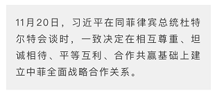 △习近平访菲前,杜特尔特总统接受了央视记者黄铮铮采访。他在采访结束后说,希望能制作一本带有中国记者照片的相册,这样他就能记住中国人民的善意。(照片由菲律宾新闻部长拍摄)