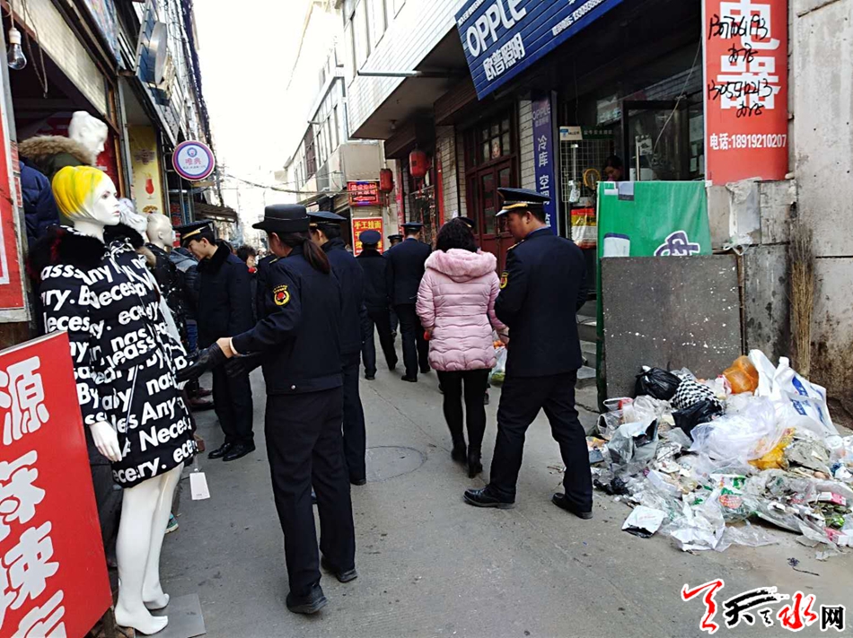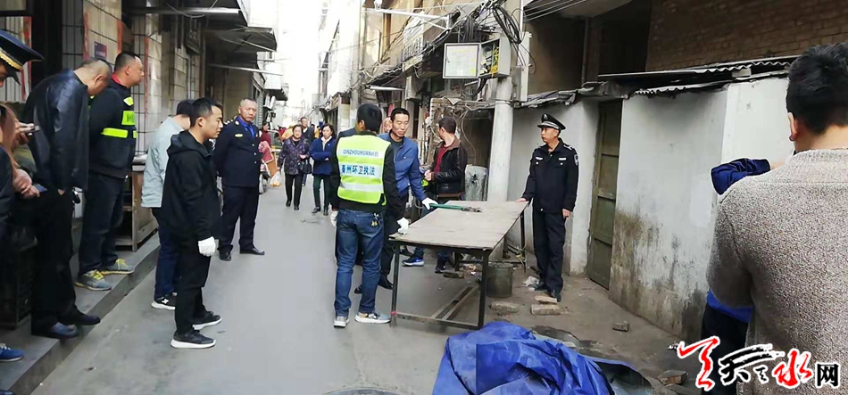天天天水网讯(通讯员 孟剑锋)军垒巷地处东方红城中村,周边流动人口较多、环境比较复杂,巷口流动摊点、巷内店外经营、乱吊乱挂、私搭乱建的情况较为突出。针对这一情况,我中队积极联合玉泉镇东方红村、区环卫局东关所、环保局、大气办等部门,于近期对军垒巷进行了集中整治。