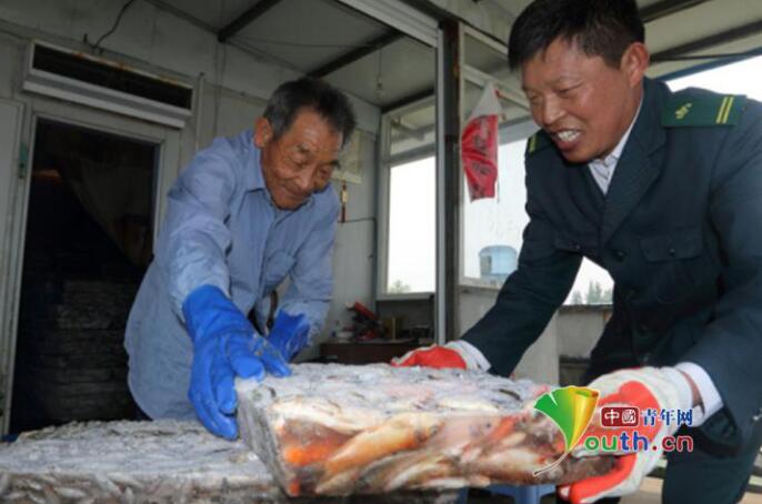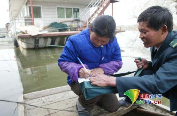 唐真亚(右)热心帮助渔民。图片来源:中国青年网