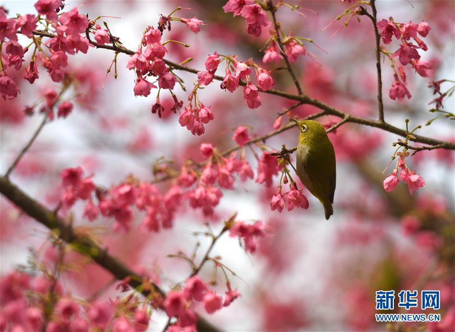 在广西南宁市石门森林公园,一只鸟儿停留在枝头(2月3日摄)。新华社记者 周华 摄