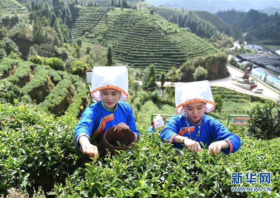 广西金秀瑶族自治县金秀镇六段村村民在生态茶园里采摘秋茶(9月20日摄)。新华社记者 陆波岸 摄