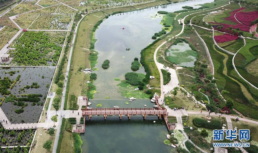 这是广西南宁市那考河湿地公园风光(4月7日无人机拍摄)。 新华社记者 周华 摄
