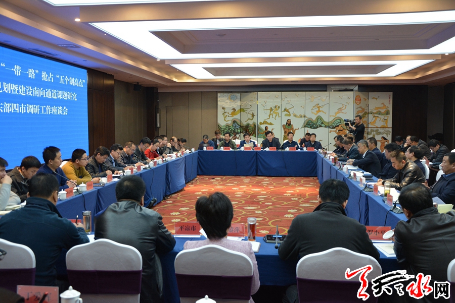 天天天水网讯【记者李欣桐】11月22日,中国(海南)改革研究院副院长张飞一行来我市,就《新时代甘肃融入“一带一路”抢占“五个制高点”战略规划》和《甘肃融入“一带一路”建设南向通道》两个课题在我市组织甘肃东部4市进行座谈调研。