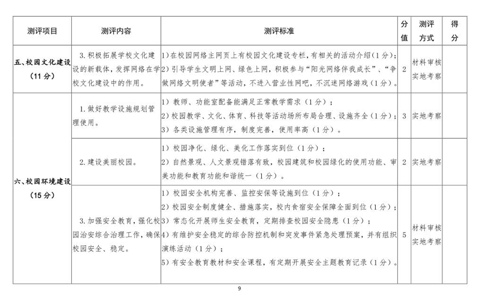 甘肃省中小学校文明校园测评细则(2018版)