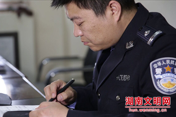 高城正在记录日常工作。图片来源:湖南文明网