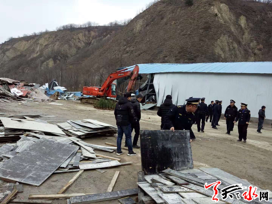 天天天水网讯【通讯员 沈彦斌】为更好的打击违法违规占用耕地搭建非农设施的行为。近期,由秦州区皂郊镇镇政府牵头组织,秦州区农业、国土、综合执法等部门联合执法,对皂郊镇王家店村一处在耕地上违法违规搭建的非农设施进行了强制拆除,拆除面积近2000余平方米。