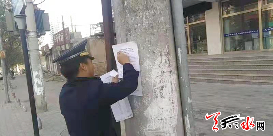天天天水网讯 为进一步加强城区摩托车、非机动车停放管理,提升城市形象,改善市民居住、出行环境,推进全国文明城市创建工作,秦州区执法局中城中队在全辖区内向个体经营户、摊主及行人下发了《天水市公安局秦州分局城区交通警察大队关于城区范围内开展摩托车、非机动车停放专项整治工作的通告》,并在显著位置张贴通告及停放点详细位置分布表。