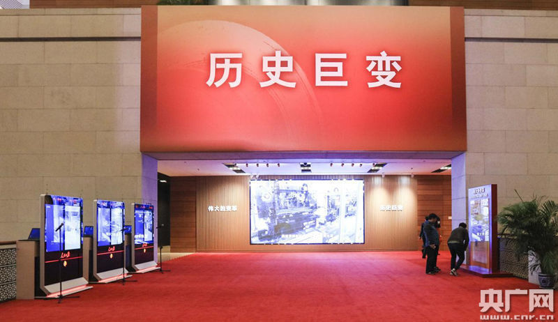 本次展览展示了改革开放40年来,我国在政治、经济、文化、民生、生态、科技、军事、党建等领域取得的成就。(央广网记者 荆宇琦 摄)