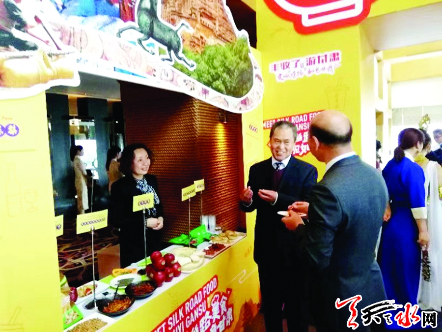 本次推介会现场设置了情景互动区,打造了“迷你”版的甘肃小吃美食一条街,各市州的美食展琳琅满目,通过PPT展示和菜品现场制作、展览、品尝等形式,向与会嘉宾全方位展示了甘肃美食。我市主要展示了天水花牛苹果、甘谷油圈圈、天水呱呱面皮、张家川伊味思风味牛肉、天水薄皮松子等美食特产,天水展台受到热捧。参会的中外嘉宾流连忘返,对天水呱呱面皮的独特口味产生了浓厚的兴趣,品尝之后赞不绝口。张家川伊味思风味牛肉以优质的口感和独特的风味赢得了一致好评,澳洲旅行商多次前来品尝,连连称赞道:这是他吃过的最好的牛肉,主动添加微信关注,并对天水文旅和美食宣传提出了意见和建议。