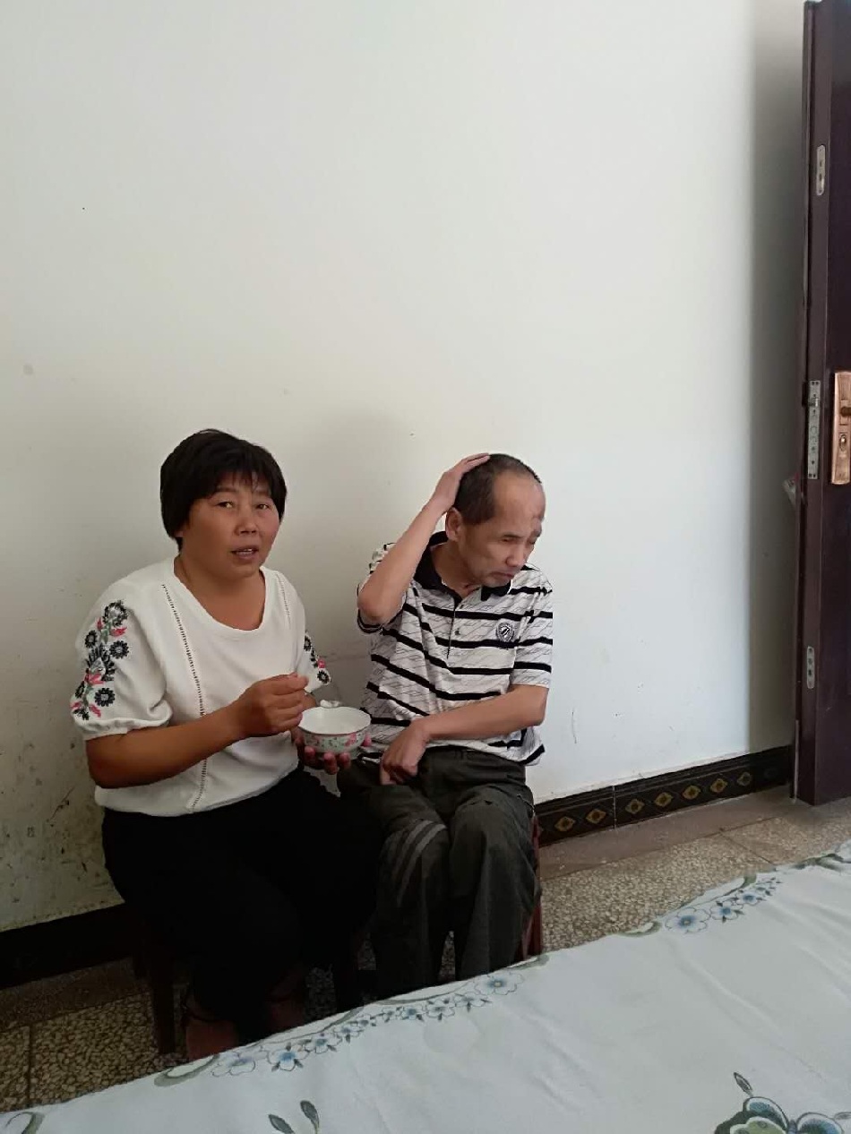 每天清晨,潘来香起床洗衣、做饭。丈夫一天三顿饭全靠她坐在床边一勺一勺地喂,一顿饭少则20分钟,长则一个小时。