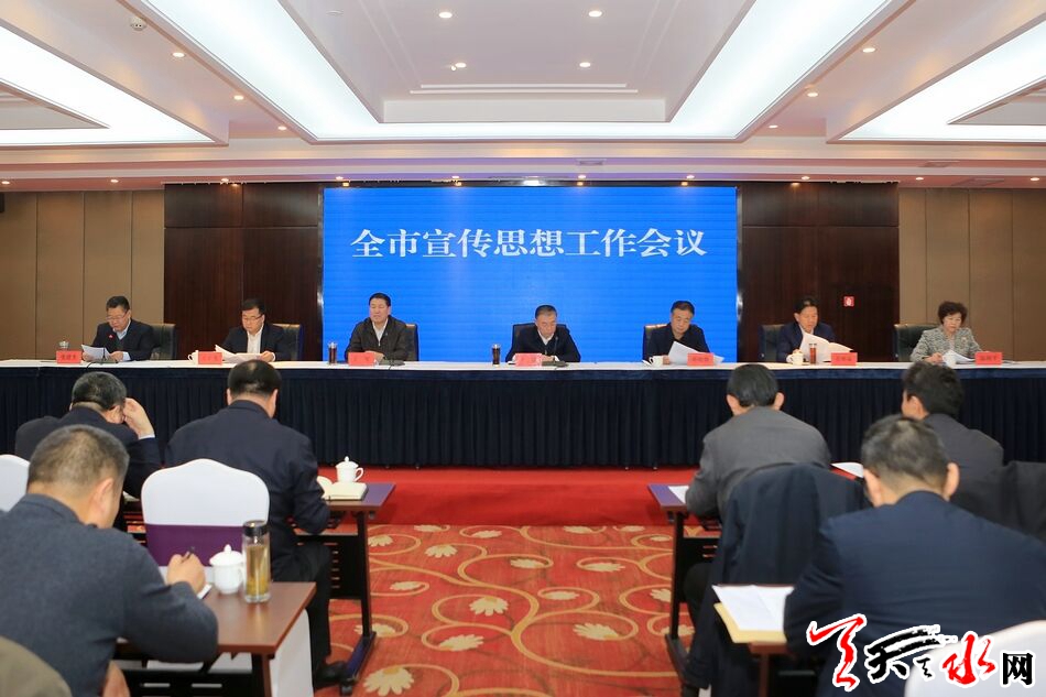 天天天水网讯【全媒体记者王晓馨】11月30日,全市宣传思想工作会议在天水宾馆召开。市委书记王锐在会上强调,要坚持以习近平新时代中国特色社会主义思想和党的十九大精神为指导,深入学习贯彻习近平总书记关于宣传思想工作的重要论述和全国、全省宣传思想工作会议精神,全面落实“举旗帜、聚民心、育新人、兴文化、展形象”使命任务,坚持守正创新,勇于担当作为,努力开创全市宣传思想工作新局面,为与全省全国一道全面建成小康社会、建设幸福美好新天水提供强大的思想保证和精神动力。