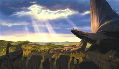 非洲大草原上一轮红日冉冉升起,为高大的乞力马扎罗山披上层金色的光纱,所有的动物涌向了同一个地方——荣耀石,兴奋地等待着一个重大消息的宣布:它们的国王木法沙将迎来自己的新生儿。