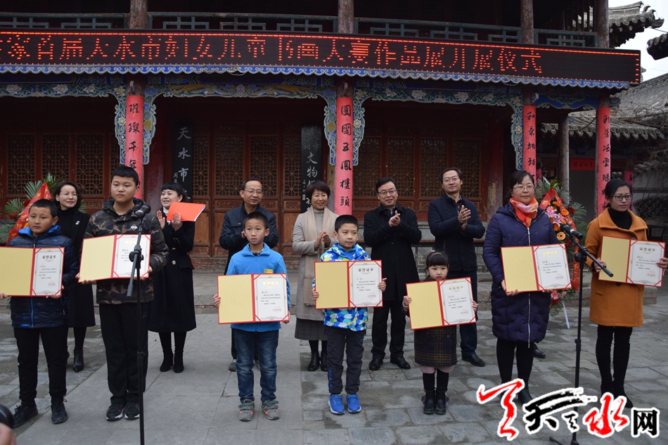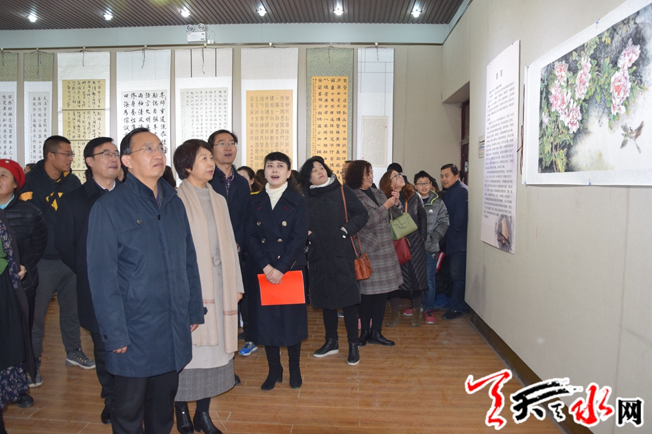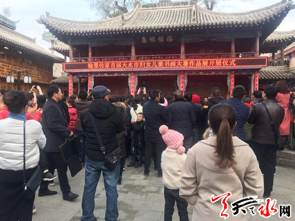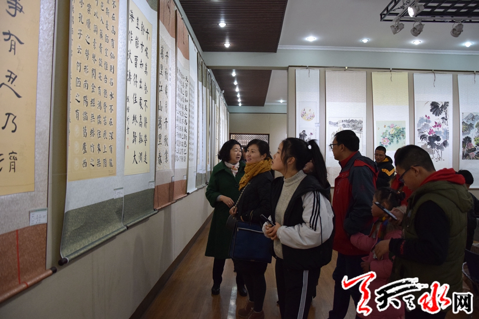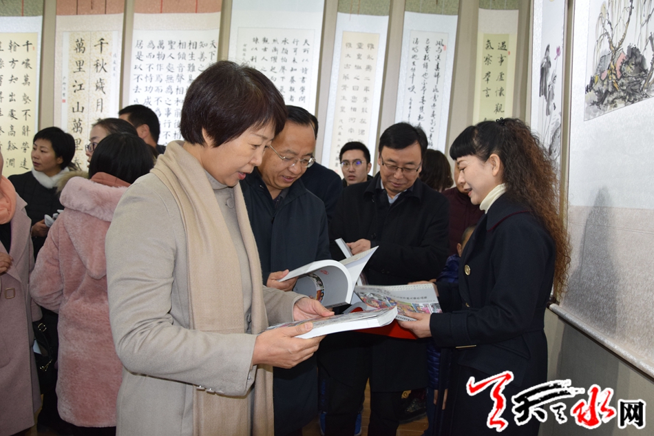 天天天水网讯(记者 陈娟)12月1日,由天水市妇联主办的“翰墨传家”首届天水市妇女儿童书画大赛作品展在天水市文化馆开展。市人大常委会副主任王晓琴,市政协副主席王振宇参加开展仪式。来自我市五县两区的近百名妇女儿童代表,部分作品作者参加了仪式。