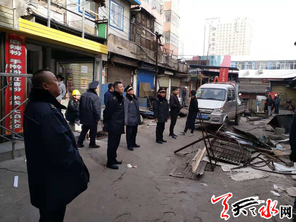 天天天水网讯【通讯员:赵懿】11月下旬以来,秦州区执法局根据市民诉求,重点对大众路商业大厦对面南北两个四合院内乱搭乱建和乱泼乱倒问题进行整治。