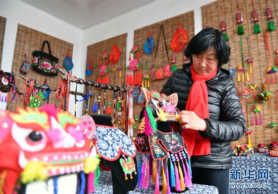 60岁的村民刘月凤在村里的刺绣坊整理自己制作的刺绣商品(12月2日摄)。新华社记者 朱峥 摄