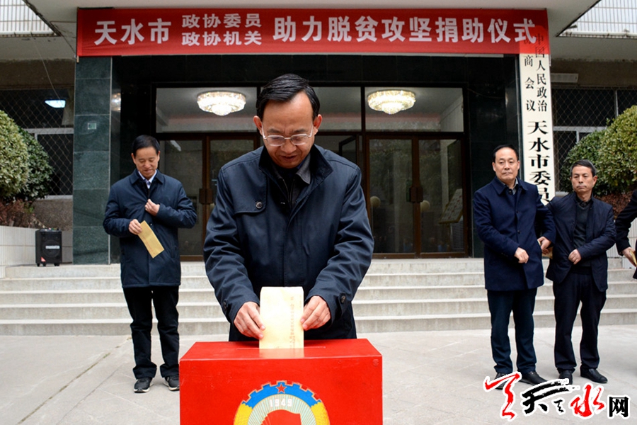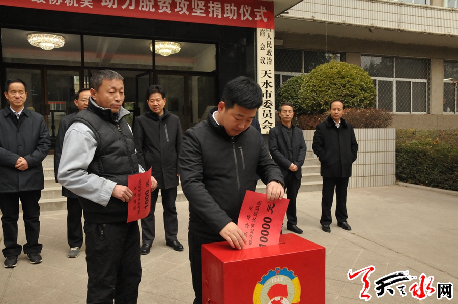 天天天水网讯【记者 童强】12月5日,天水市政协组织市政协委员及政协机关全体干部职工开展助力脱贫攻坚捐助活动,旨在贯彻落实中央、省、市委关于积极引导社会力量广泛参与深度贫困地区脱贫攻坚,帮助贫困困难群众解决生产生活困难,举全市之力坚决打赢精准脱贫攻坚战的决策部署。