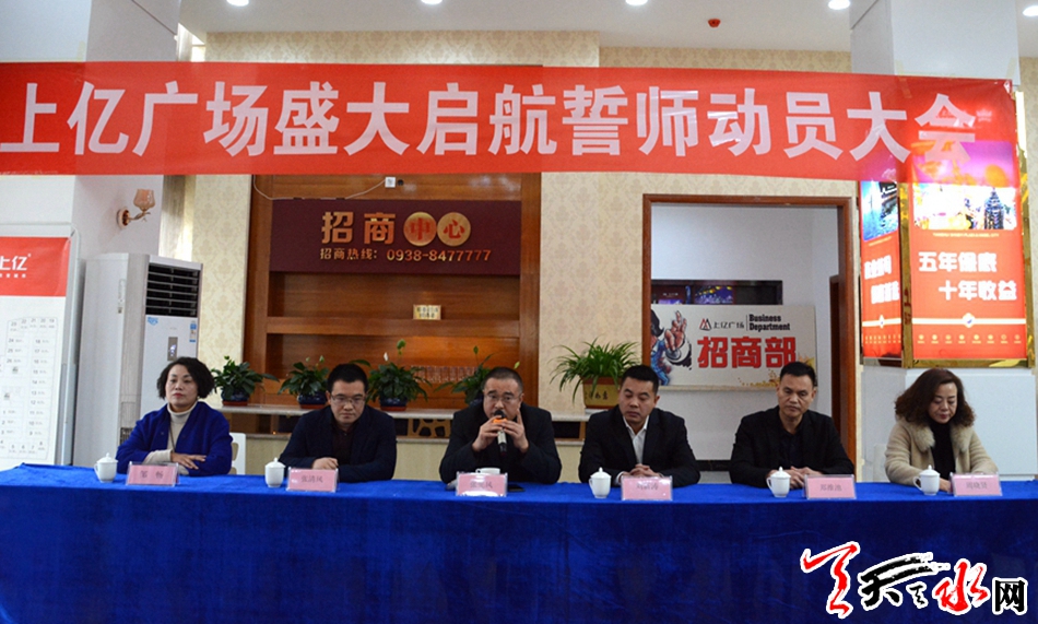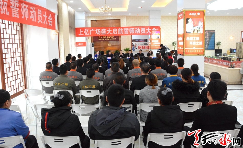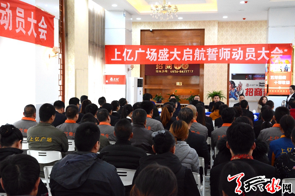 天天天水网讯(见习记者罗馨)12月4日下午,上亿广场盛大启航誓师动员大会于上亿广场招商营销中心成功举办。天水亿丰置业有限公司、甘肃亿丰商业管理有限公司主要领导、已入驻上亿广场的商户代表、新闻媒体记者以及公司全体员工共100余人参加此次誓师动员大会。