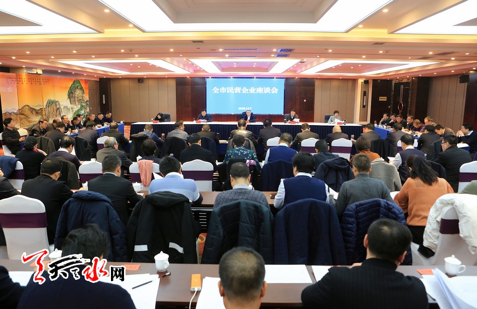 天天天水网讯【全媒体记者 王晓馨】12月7日上午,市委、市政府召开全市民营企业座谈会,听取民营企业家对我市民营经济发展的意见建议,研究支持和帮助民管企业发展的措施办法。市委书记王锐强调,要深入学习贯彻习近平总书记在民营企业座谈会上的重要讲话精神,狠抓政策精准落实,以更加有效的政策举措帮企业之困、解企业之难,着力优化营商环境,推动全市民营经济高质量发展。