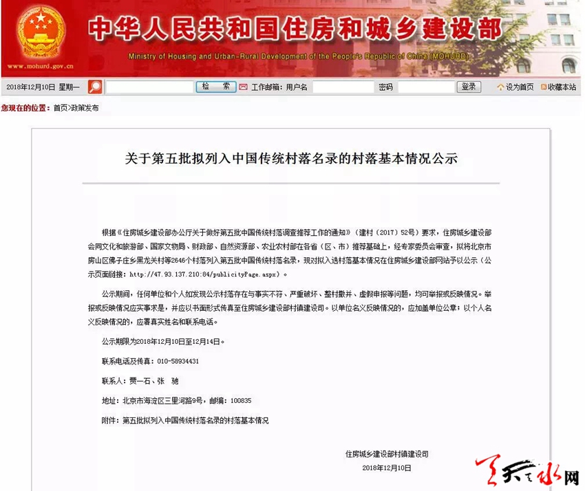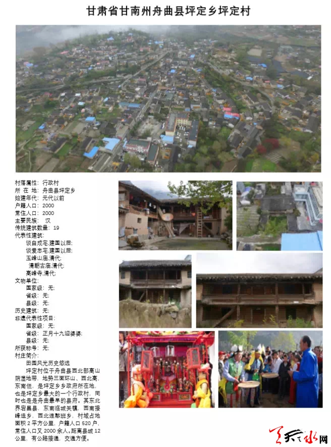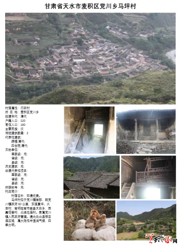 天天天水网讯据每日甘肃网消息 12月10日,住房和城乡建设部网站公布了《关于第五批拟列入中国传统村落名录的村落基本情况公示》,甘肃省7市州17个村入选!天水市麦积区党川乡马坪村榜上有名。