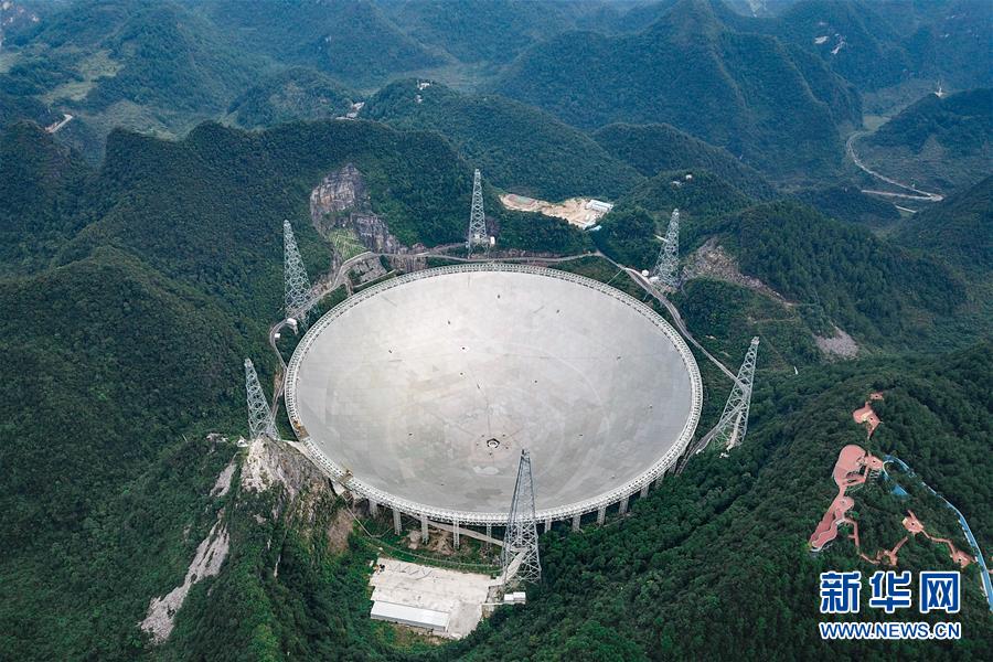 这是9月10日无人机拍摄的被誉为“中国天眼”的500米口径球面射电望远镜(FAST)。新华社记者 欧东衢 摄