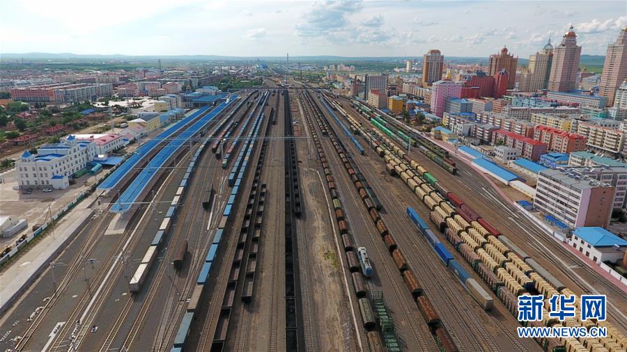 这是7月15日拍摄的满洲里火车站(无人机拍摄)。新华社发