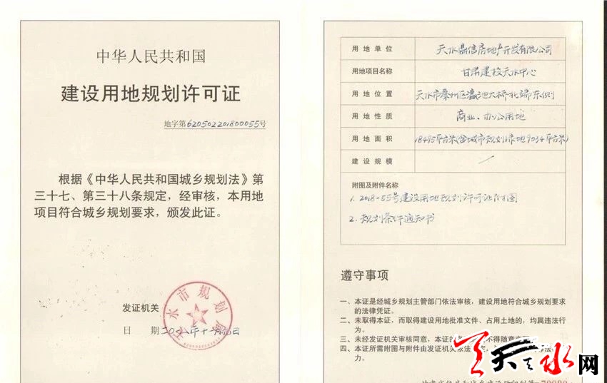 记者在天水市规划局获悉,甘肃建投天水中心由天水鼎信地产开发有限公司开发建设,项目选址秦州区瀛池大桥北端东侧,用地性质为商业、办公用途,用地面积为18495平方米,其中含城市规划绿地9034平方米。