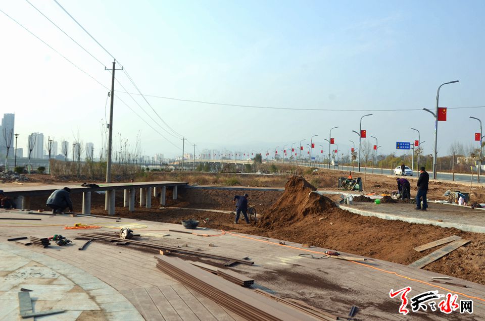 天天天水网讯【记者 张文都】城市形象不仅是一个地方的宣传名片,也是一种新的生产力。在创建全国文明城市为契机的背景下,甘谷县厚植形象魅力,高起点推进城市建设,提升城市“颜值”。近日,记者在该县北滨河路渭河风情线建设现场看到,该项工程正在建设景观绿化、景观铺装等收尾工程,各项施工已基本完工。