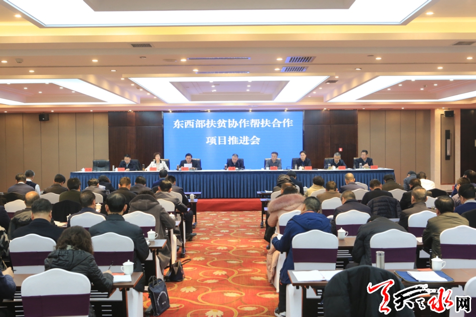 天天天水网讯【全媒体记者王晓馨】12月13日下午,天水市东西部扶贫协作帮扶合作项目推进会在天水宾馆召开。市委书记王锐强调,要深入贯彻习近平总书记关于扶贫开发重要论述和在东西部扶贫协作座谈会上的重要讲话精神,认真落实党中央和省委、省政府东西部扶贫协作工作部署,推动市党政代表团赴天津市走访对接成果落地见效,加大项目合作力度,拓展东西协作领域,确保打赢打好脱贫攻坚这场硬仗。