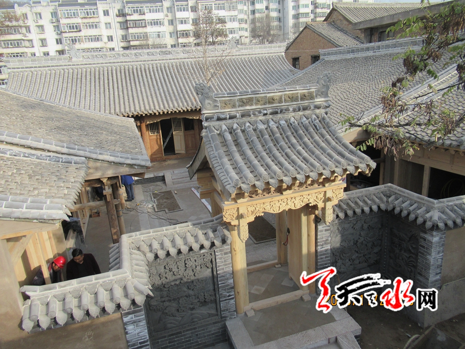 登临天水市秦州区南北二山,从远处眺望,在俗称“西关里”的一片地方,可清晰地看到一条条古巷、一幢幢传统民居,宛如一颗颗“明珠”撒落于此。信步走进其中,古巷幽深,庭院宽敞,房舍精美,花木扶疏,构成了天水传统民居的特有风貌。