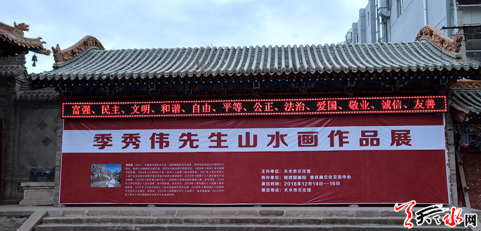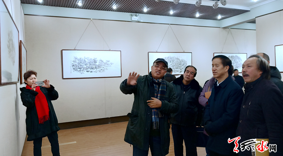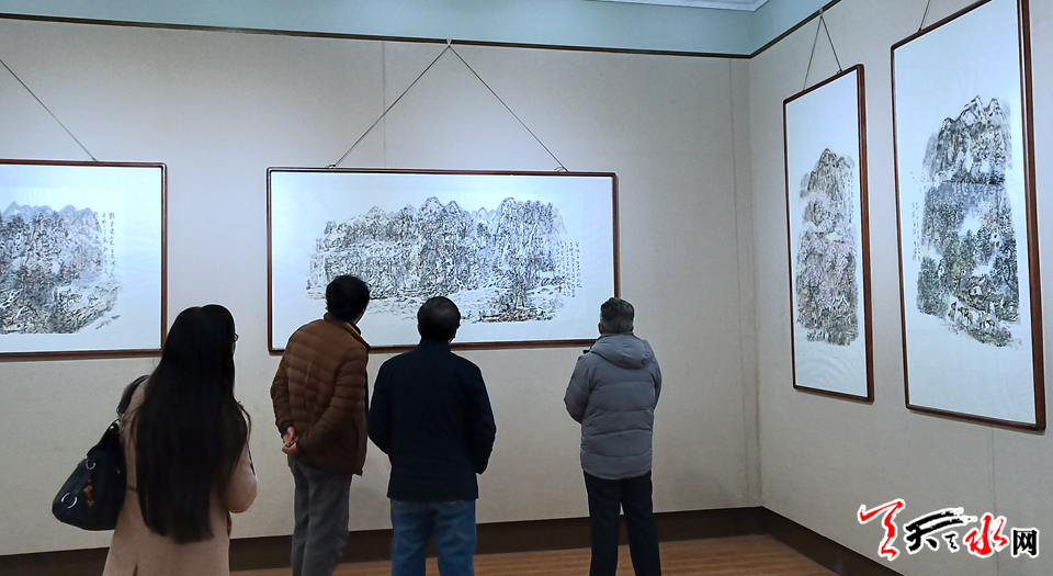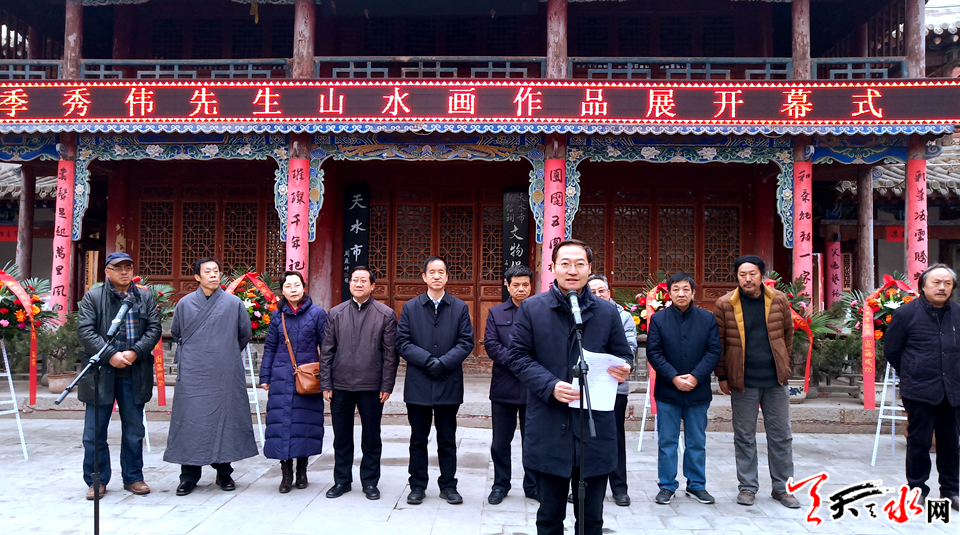 天天天水网【记者 张文都】12月14日,中国美术家协会会员、陕西国画院专业画家、陕西省国画院山水画院执行院长、陕西山水画研究会副主席、陕西长安画派研究院研究员季秀伟先生山水画作品展在天水市文化馆开展。天水市人大常委会副主任蒲朝晖、天水市政协副主席苏定武出席书画展开幕式并观看了展览。