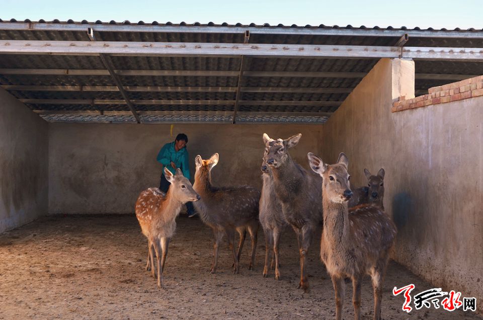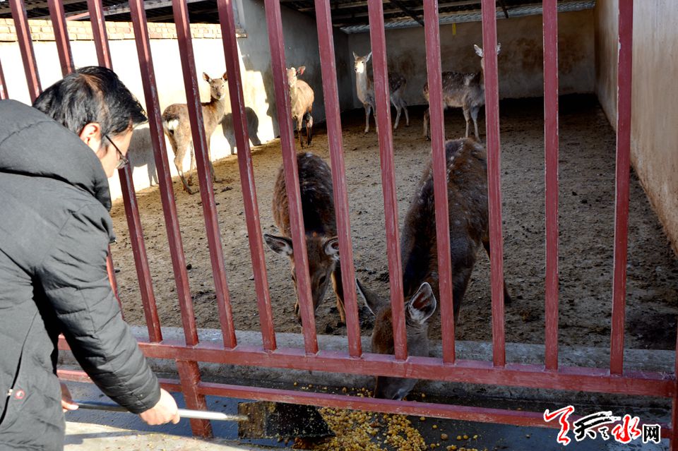 12月8日,隆冬时节,寒风凛冽。在甘谷县八里湾镇上岔村一处四面环山的山坳里,不时传来鹿群呦呦的鹿鸣声,身着工作服的郭龙平正在给100只饥肠辘辘的“鹿宝宝”喂养饲料,寒冬季节,这些褪去毛色的“鹿宝宝”将在来年开春“羽化成蝶”成一只只身披金色霞光的金鹿。