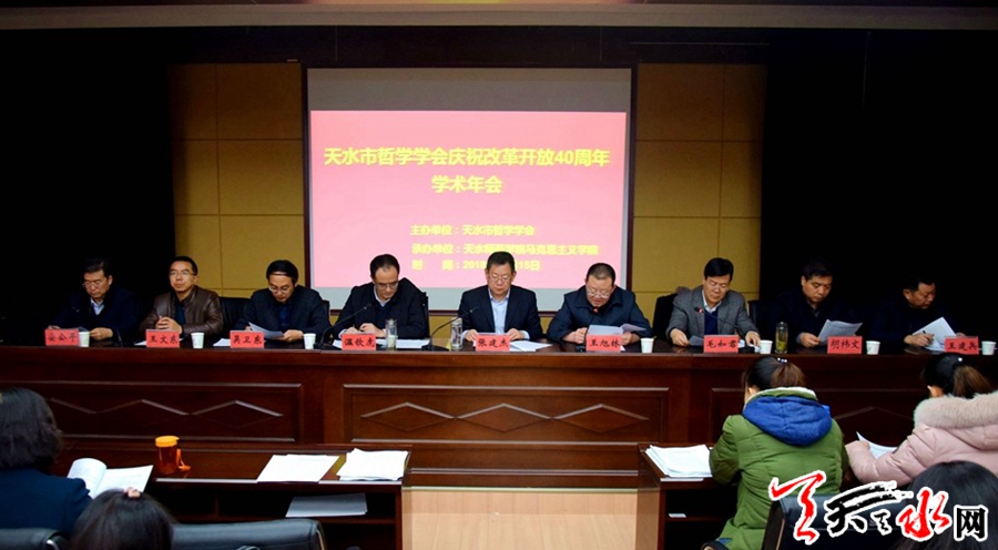 天天天水网讯【记者童强】12月15日,天水市哲学学会召开庆祝改革开放40周年学术年会。市委常委、宣传部长张建杰出席会议。