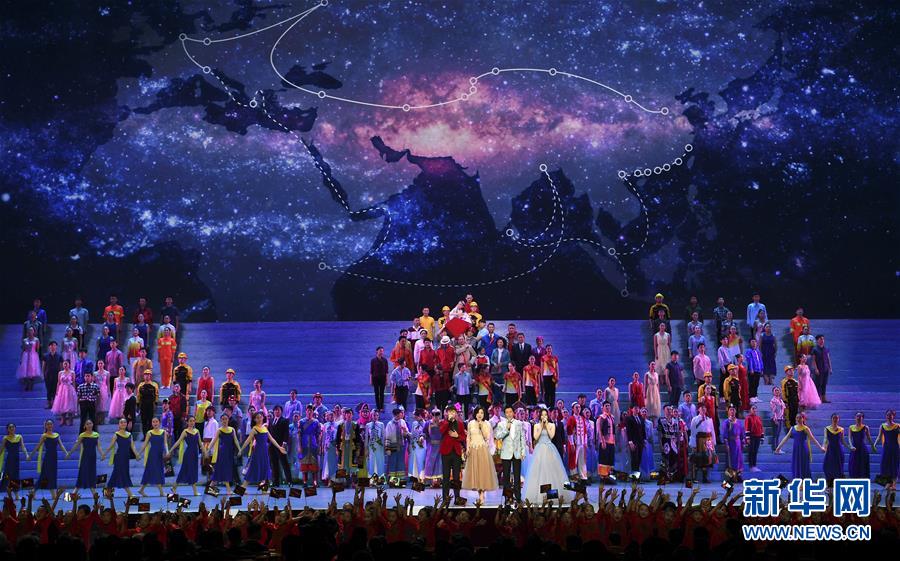 12月14日,庆祝改革开放40周年文艺晚会《我们的四十年》在北京人民大会堂举行。这是节目《相约世界》。 新华社记者 燕雁 摄