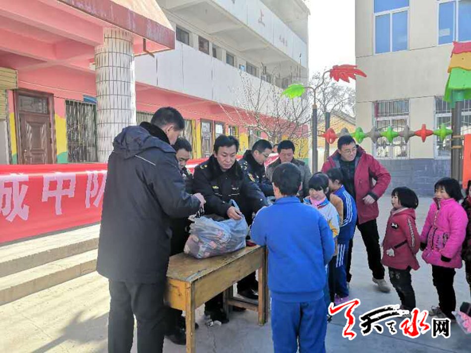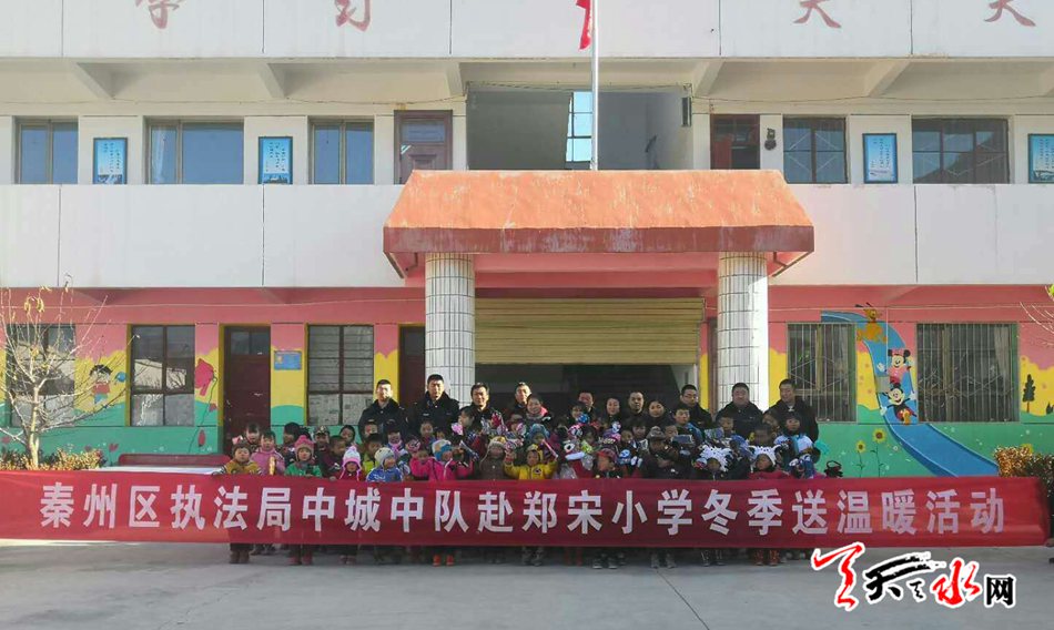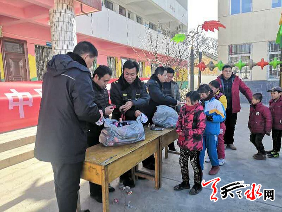 12月17日, 秦州区执法局中城中队党支部组织党员群众一行,深入郑宋小学开展冬季“送温暖”活动,向学生们送去口罩、耳罩,手套,袜子60余套,让学生们温暖过冬。