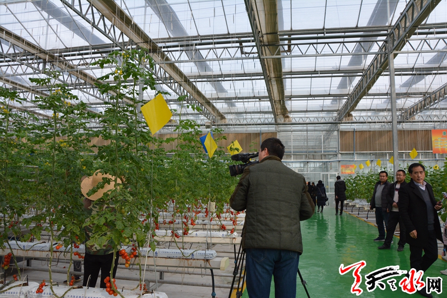 冬天是萧瑟的,但这里却是一个例外。12月11日,当天水市庆祝改革开放40周年全媒体大型集中采访团走进武山县蔬菜产业科技示范园区,一股清新的菜香扑鼻而来,满园的各色蔬菜鲜嫩欲滴,红彤彤的小西红柿、翠绿的小黄瓜挂满了藤蔓,各区域管理人员正在进行水肥一体化管理以及不同栽培基质对比试验等工作,园区满目葱郁,一片生机盎然。
