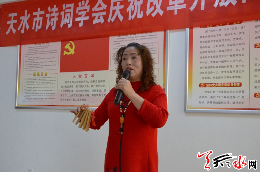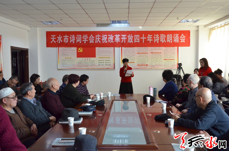 天天天水网讯【记者马凯】12月17日,天水市诗词学会举办天水市庆祝改革开放40周年诗歌朗诵会。市人大常委会副主任蒲朝晖出席活动。