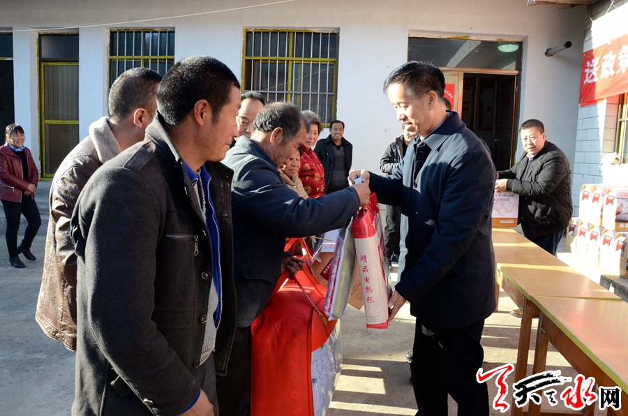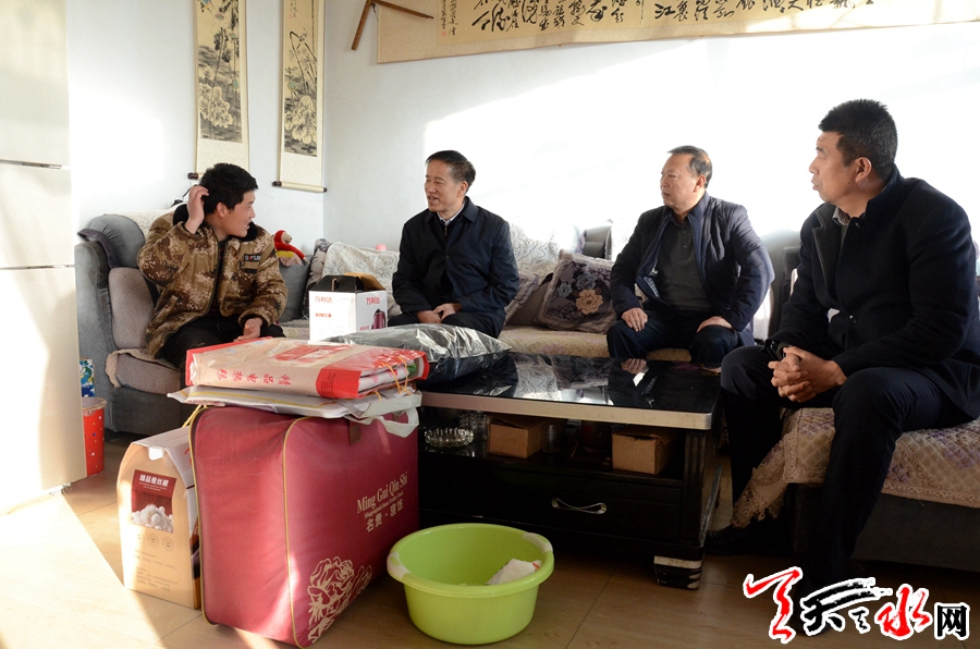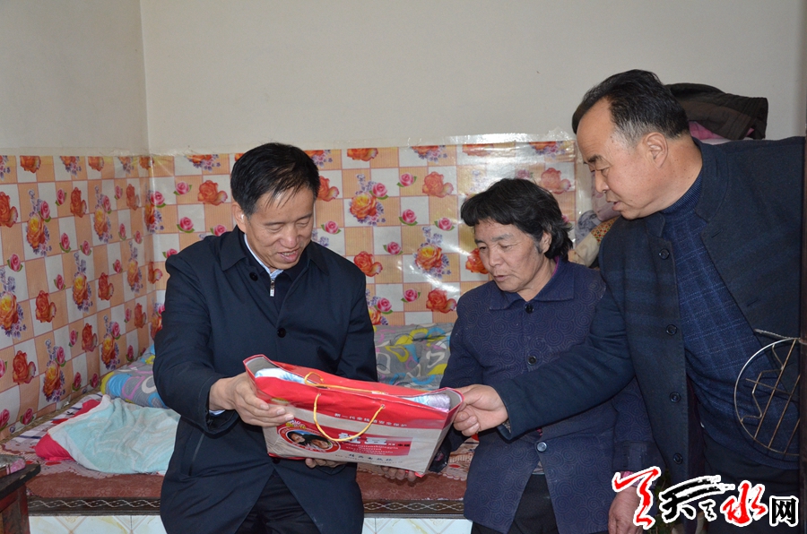 天天天水网讯【记者闫波】12月17日,天水市政协副主席苏定武带领市、区国土局相关负责人到帮扶点娘娘坝镇花园村开展“送政策送温暖送服务”活动并走访慰问了贫困户,为他们送去了党和政府的温暖关怀。