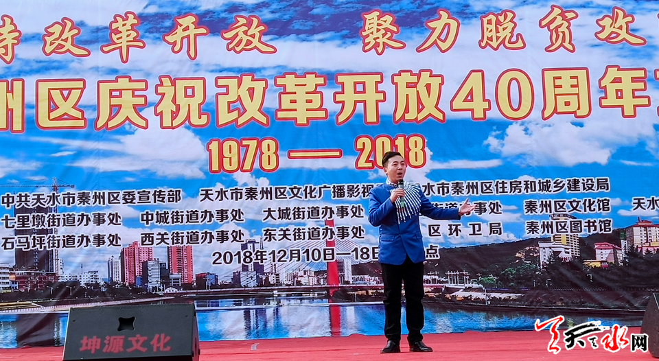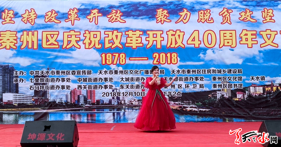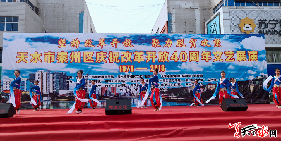 天天天水网讯【记者 张文都】12月10日,由秦州区委宣传部、秦州区文化广播影视局、秦州区住房和城乡建设局主办,以“坚持改革开放,聚力脱贫攻坚”为主题的文艺展演在天水市龙城广场拉开帷幕。