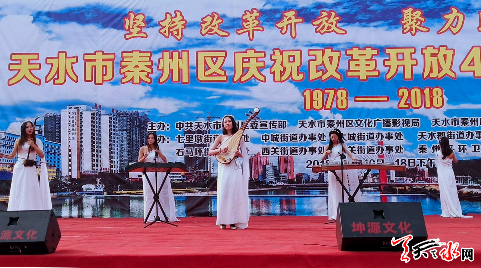 据了解,本次展演为期9天,来自秦州区的7个街道办事处、秦州区文化馆、天水镇、秦州区环卫局、秦州区图书馆等单位以文艺汇演的方式呈现改革开放以来秦州人民文化精神等各个领域取得的丰硕成果,见证改革开放40年来的巨大变迁,为庆祝改革开放40周年献礼。