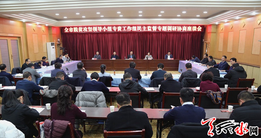 天天天水网讯【记者杨璟】12月19日,全市脱贫攻坚领导小组专责工作组民主监督专题调研协商座谈会召开。会议听取各民主党派对专责工作组工作的监督情况及意见建议,推进全市脱贫攻坚各专责组工作扎实有效开展。