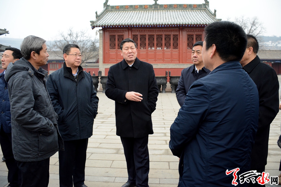 天天天水网讯【全媒体记者吴丽娜】12月22日,市委副书记、市长王军带领秦州区政府以及市发改、财政、国土、建设、文旅、规划等部门负责人,在伏羲庙游客服务中心项目进行现场办公。他强调,要进一步细化实化方案,强化统筹协调,加快推进实施,切实通过项目建设提升伏羲庙景区管理、经营、服务水平,推动景区实现高规格、高品质发展。