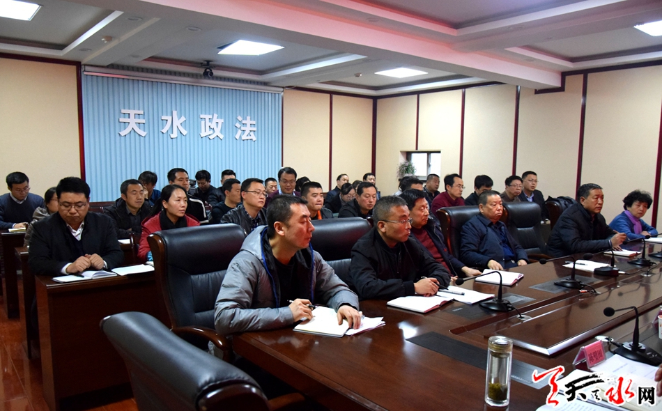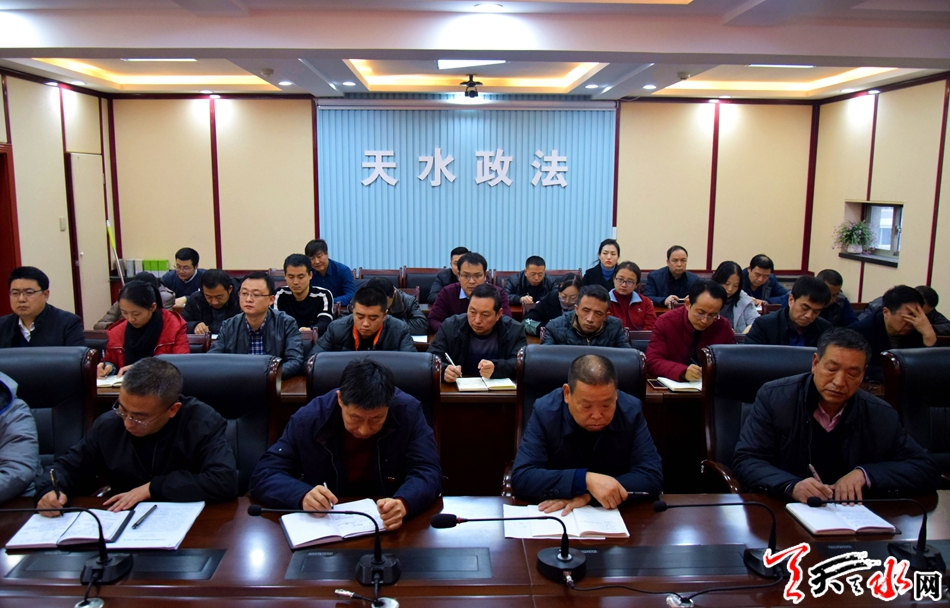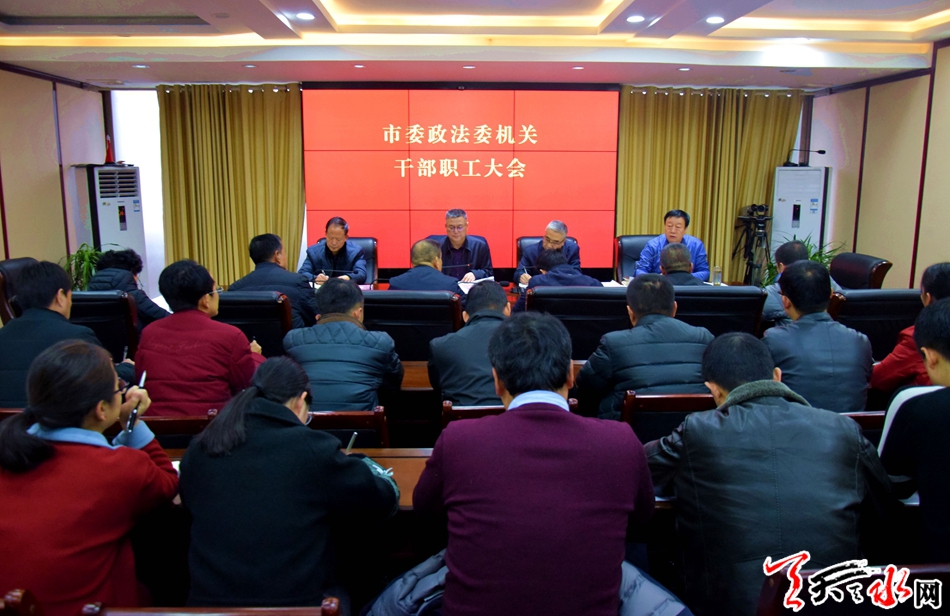 天天天水网讯【记者马哲】12月21日下午,市委常委、政法委书记蒲军主持召开市委政法委干部职工会议,传达学习纪念毛泽东同志批示学习推广“枫桥经验”55周年暨习近平总书记指示坚持发展“枫桥经验”15周年大会精神和省委常委、政法委书记胡焯同志在全省坚持和发展“枫桥经验”深化平安甘肃建设工作推进会上的讲话精神,分析研判了全市政法综治维稳反邪教等工作形势,对当前和下一步重点工作进行了安排部署。