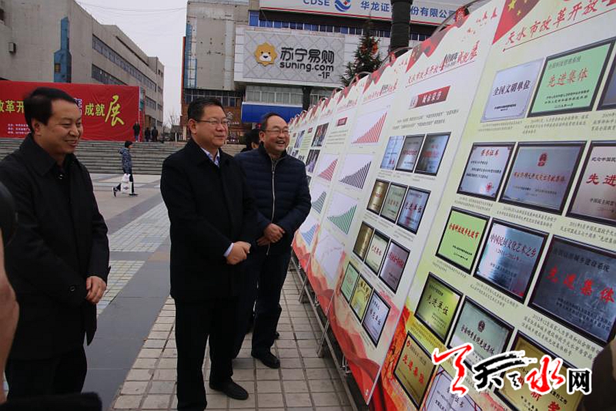 12月23日至24日,由市委宣传部、市档案局联合举办的天水市庆祝改革开放40周年成就展在龙城广场举行。展览从10个方面展示了改革开放40年来天水所发生翻天覆地的历史巨变。据了解,展览18日在文化馆开展以来,180多家单位的干部职工及社会各界群众共3万多人参观展览,社会反响巨大。为方便更多人参观,进一步扩大社会影响面,主办方再次在龙城广场布展。