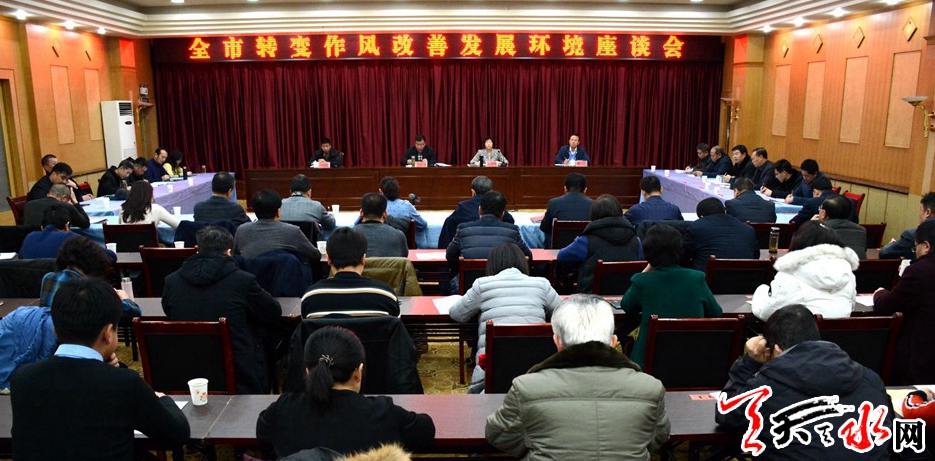 天天天水网讯【记者童强】12月24日,天水市召开全市转变作风改善发展环境专题调研协商座谈会,听取市级各民主党派对有关单位转变作风改善发展环境工作的意见建议,推进全市转变作风改善发展环境工作全面开展。
