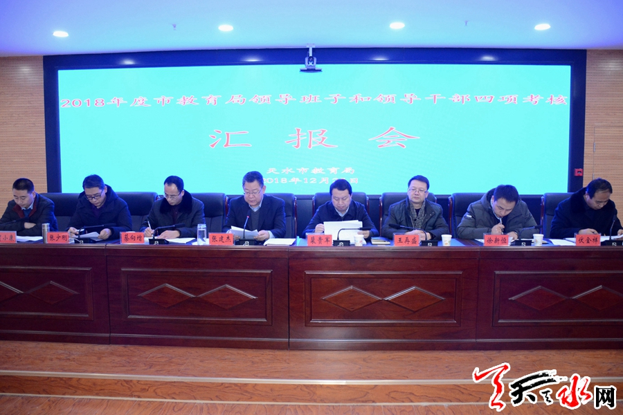 天天天水网讯【记者马凯】12月25日,天水市委常委、宣传部长张建杰带领市委第七考核组到市教育局,对2018年市教育局领导班子和领导干部工作、党风廉政建设、意识形态工作责任制和全面深化改革四项工作进行考核。