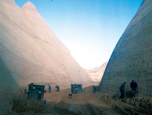 图为改革开放初期甘肃庆阳环县县乡路拓宽工程