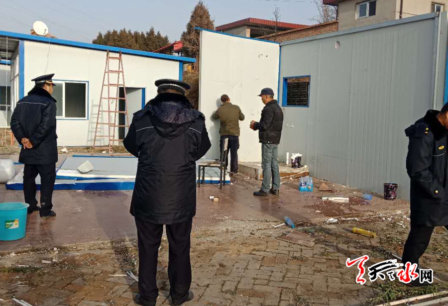 自今年9月份以来,在区委、区政府的统一安排部署下,秦州区执法局根据南郭寺景区生态环境保护专项整治行动方案的要求,对涉及范围内的31户进行入户调查摸底并建立档案,绘制平面图册32份,下发相关法律文书31份、对每一户制作了当事人询问笔录,配合玉泉镇政府拆除违法占地“大棚房”600余平方米。